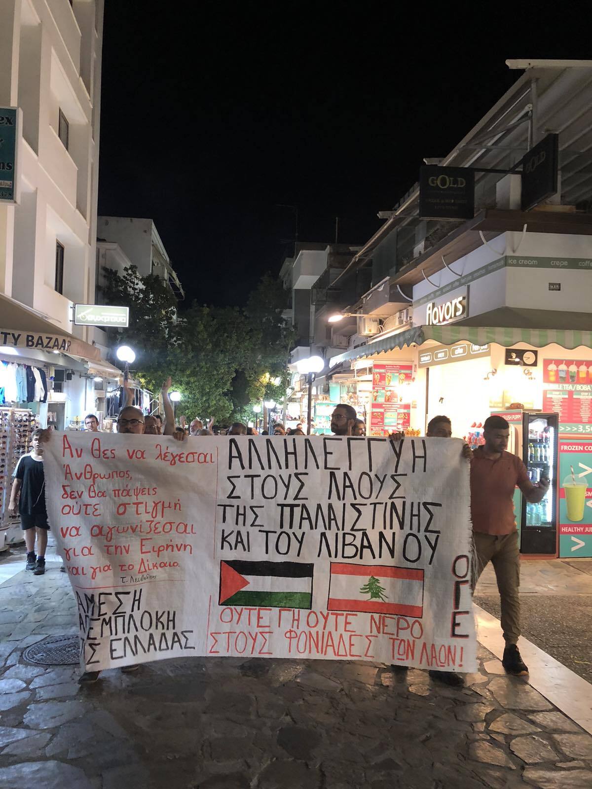 Εκφράζουμε την αλληλεγγύη μας στους λαούς της Παλαιστίνης και του Λιβάνου καθώς και στους άλλους λαούς της Μέσης Ανατολής που βρίσκονται αντιμέτωποι με τις ιμπεριαλιστικές απειλές και επιθέσεις, υπογραμμίζοντας ότι δεν μπορεί να υπάρξει ειρήνη στη Μέση Ανατολή χωρίς τη δημιουργία και την αναγνώριση του Ανεξάρτητου Κράτους της Παλαιστίνης εντός των συνόρων της προ 4ης Ιουνίου 1967 με πρωτεύουσα την Ανατολική Ιερουσαλήμ, σύμφωνα με τα σχετικά ψηφίσματα του ΟΗΕ. Απαιτούμε τον τερματισμό των επιθέσεων του Ισραήλ και την απόσυρσή του από όλα τα εδάφη της Παλαιστίνης, του Λιβάνου και της Συρίας.