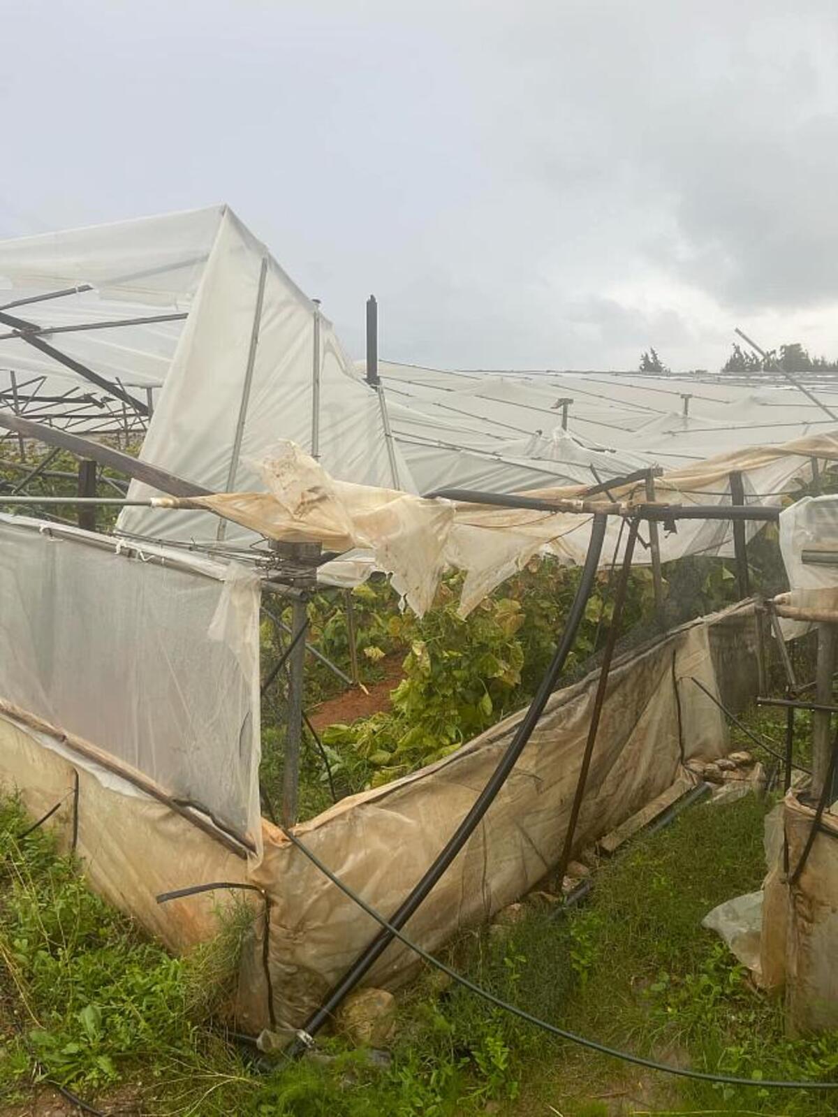 Χαρακτηριστικές είναι οι φωτογραφίες από το Κλήμα του Δήμου Φαιστού που όπως μπορείτε να δείτε και στις φωτογραφίες του Κώστα Καμπουράκη, ο ανεμοστρόβιλος ξήλωσε το θερμοκήπιό του.