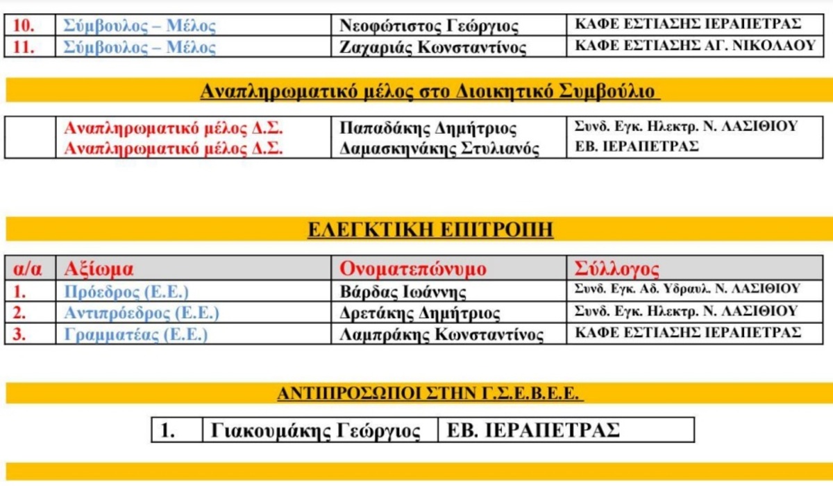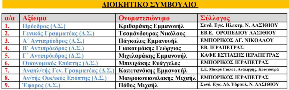 Η νέα διοίκηση της ΟΕΒΕΝΛ αποτελείται από: