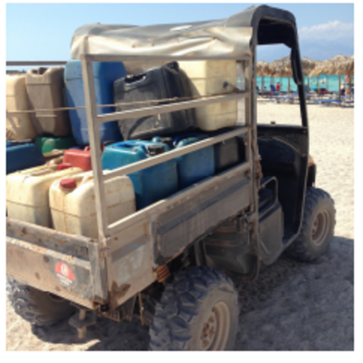 Είναι δε χαρακτηριστικό ότι ο εκάστοτε διαγωνισμός πάντα αναφέρει ότι εκμισθώνεται τεμάχιο παραλίας 550 τμ , και για κάθε σέτ Ομπρέλα+2 Ξαπλώστρες απαιτούνται min 5 τμ, και ως εκ τούτου συνολικά τα σέτ θα πρέπει να είναι 110. Ευκόλως όμως φαίνεται από αεροφωτογραφίες ότι τα σετ ξεπερνούν τα 150 σε αριθμό ανά τεμάχιο παραλίας, αντί των 110. Υπάρχει προφανή παράβαση, καταπατείται σε έκταση παραλία του Δημοσίου, το οποίο δεν εισπράττει ΟΥΔΕΝ (η Κτηματική Υπηρεσία εγκληματικά αδιαφορεί για το Δημόσιο συμφέρον, …γιατί άραγε ; …) , ενώ περιορίζεται –αφού επουδενί δεν διασφαλίζεται- και η ελεύθερη πρόσβαση και η ελεύθερη παραλία για λουόμενους Έλληνες και Αλλοδαπούς τουρίστες. 6. ΑΣΤΥΝΟΜΕΥΣΗ / ΛΙΜΕΝΑΡΧΕΙΟ : Με όλη αυτή την παραβατικότητα λειτουργίας παράνομων καντινών, beach bars, μοτοσικλετών, κ.α. αναφύεται έντονη η αναγκαιότητα της ΑΜΕΣΗΣ αστυνόμευσης της Νήσου με την παρουσία Δασοφυλάκων. Πρέπει να τοποθετηθεί σε κάθε παραλία –για να εμπεδωθεί το αίσθημα ασφάλειας στους επισκέπτες της Νήσου- κατάλληλη ενημερωτική πινακίδα πληροφόρησης για την υφιστάμενη αστυνόμευση αλλά και για το Ευρωπαϊκό Οικολογικό Δίκτυο NATURA2000 που η Νήσος ανήκει. Πρέπει με μέριμνα της Αστυνομίας να κατασχεθούν και να απομακρυνθούν οι 4τροχες μοτοσικλέτες (φωτό παραπλεύρως) από την Νήσο που καταφέρνουν τεράστιο οικολογικό πλήγμα και ντροπιάζουν την πατρίδα μας στα μάτια των τουριστών. Η Αστυνομία καίτοι τις έχει καταγράψει, γνωρίζει τον ιδιοκτήτη τους, εντούτοις δεν τις έχει αφαιρέσει , και ΟΛΟΙ οι πολίτες της Ιεράπετρας αναρωτιούνται …γιατί άραγε ; … Δυστυχώς επίσης το Λιμεναρχείο Ιεράπετρας καταγγέλλετε από αλιείς της Ιεράπετρας για την αποσιώπηση – ….. γιατί άραγε ; …..- της καταγγελίας από αλιείς -γνωρίζω μερικούς από αυτούς- της πόλης σύμφωνα με την οποία το καΐκι που για κάλυψη διατηρεί στο όνομα της συζύγου του, ο –παράνομα- κάτοικος και εκμεταλλευτής της Νήσου, εφοδιάζετε για αυτό το καΐκι το δικαιούμενο αφορολόγητο πετρέλαιο για τις ανάγκες του ψαρέματος (υποτίθεται), και με αυτό το αφορολόγητο γεμίζει τα ντεπόζιτα για τις γεννήτριες στην Νήσο Χρυσή, με κίνδυνο πυρκαγιάς, ενώ πραγματοποιεί φοροδιαφυγή και λαθρεμπόριο καυσίμου με την ανοχή του Λιμεναρχείου Ιεράπετρας. Για την φορολογική τακτοποίηση στα βιβλία του αλλά και της συζύγου του όπου έχει λεμβολόγιο το καΐκι , λαμβάνει εικονικά τιμολόγια από βενζινάδικα της Ιεράπετρας Κρήτης. Επίσης με το καΐκι αυτό -σύμφωνα με την καταγγελία των αλιέων, γνωρίζω μερικούς από αυτούς- πραγματοποιεί –καίτοι απαγορεύεται αφού είναι νηολογημένο για αλιεία- μεταφορές εμπορευμάτων του (μοτοσυκλέτες, καύσιμα, ομπρέλες, ξαπλώστρες, ποτά, τρόφιμα, κ.α.) , καθώς και επιβατών αντί κομίστρου από ερημικές παραλίες και λιμενίσκους της Ιεράπετρας για να μην τον αντιληφθούν, για να μην προκαλεί τους αλιείς, αλλά και να αποφεύγει ελέγχους από Λιμεναρχείο. Όλα αυτά τα χρόνια οι αλιείς ενημέρωναν τηλεφωνικά το Λιμεναρχείο την στιγμή που τον έβλεπαν να παρανομεί και να φορτώνει εμπορεύματα και επιβάτες, αλλά το Λιμεναρχείο ΠΟΤΕ δεν έστελνε λιμενικό όχημα την ώρα της φόρτωσης ή/και της επιβίβασης των τουριστών. Αυτή η επίορκη και πρόδηλα παραβατική συμπεριφορά Λιμενικών και του κατοίκου της Νήσου έχει καταγγελθεί πολλάκις στα ραδιόφωνα και τις εφημερίδες του Νησιού από τους πολίτες της Ιεράπετρας Κρήτης. Γιατί άραγε αποσιωπούνται από 