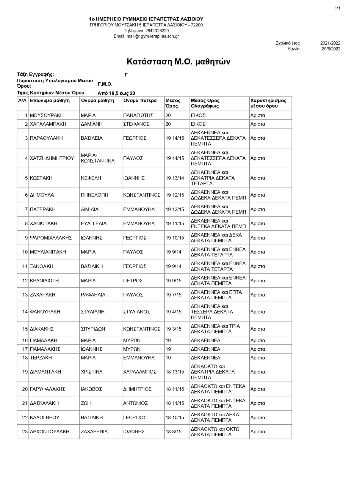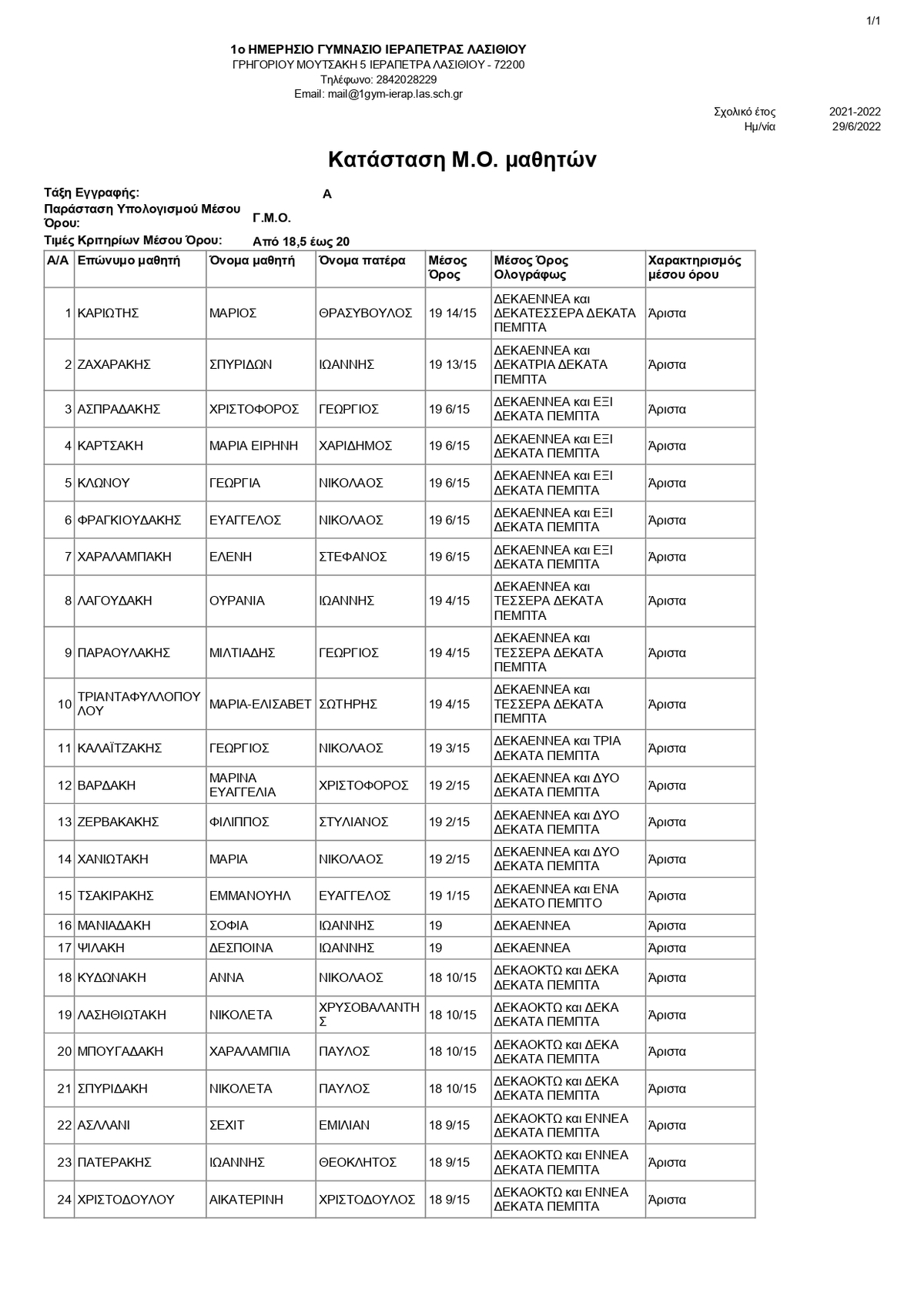 Οι αριστεύσαντες του 1ου Γυμνασίου Ιεράπετρας ΛΑΣΙΘΙ ΙΕΡΑΠΕΤΡΑ 12:04 μ.μ. - Τετάρτη 29 Ιουνίου 2022 12:06 μ.μ. - Τετ, 29/04/2022 ΙΕΡΑΠΕΤΡΑ, 1Ο ΓΥΜΝΑΣΙΟ , ΑΡΙΣΤΕΙΑ Δείτε εδώ αναλυτικά τους πίνακες