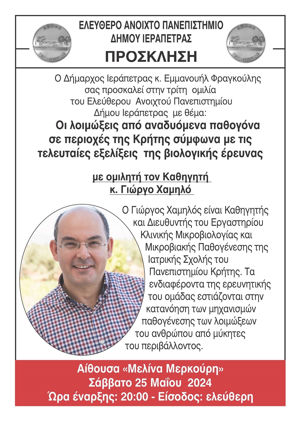 τρίτη ομιλία του Ελεύθερου Πανεπιστημίου Δήμου Ιεράπετρας με θέμα:
