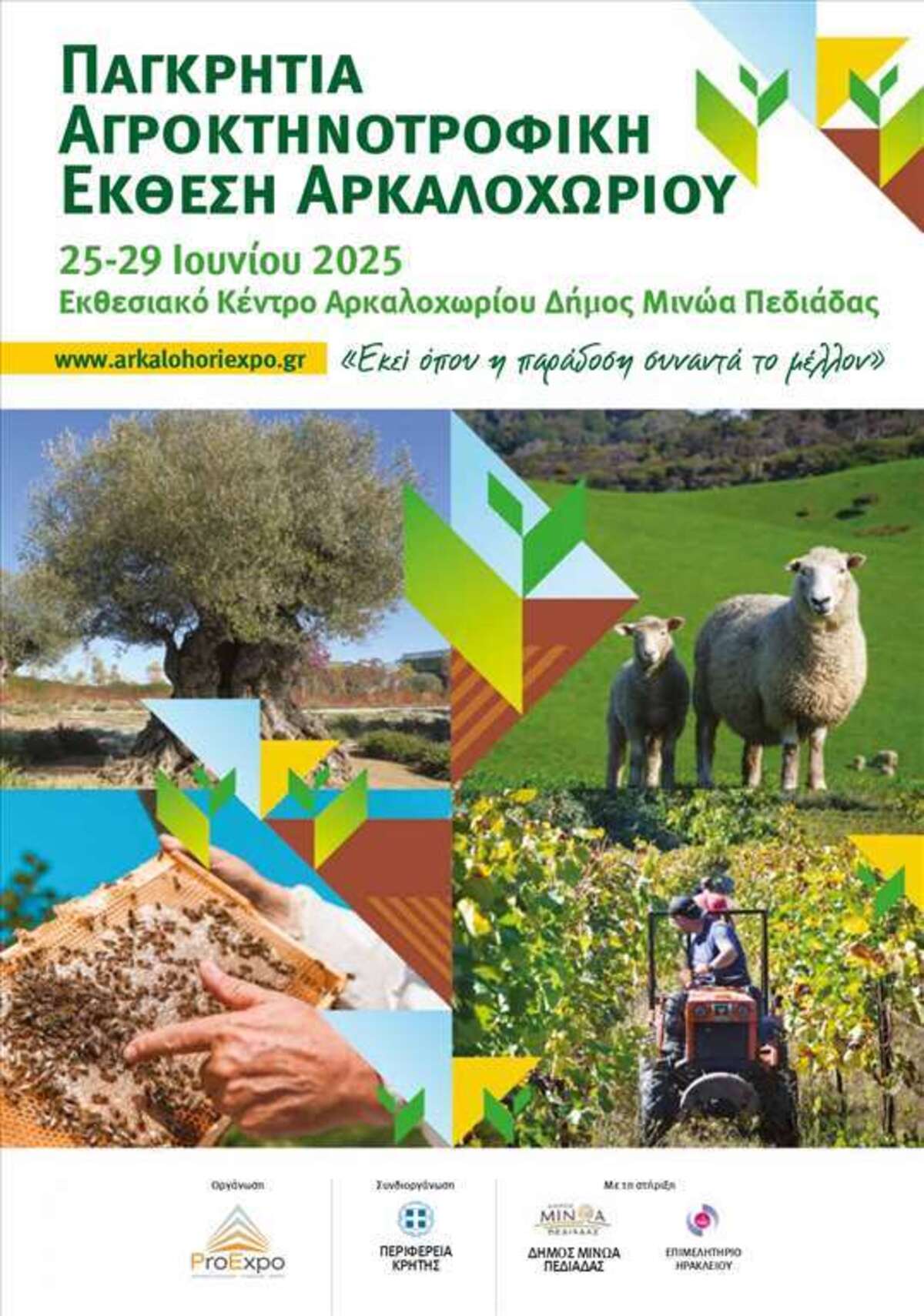 Η Παγκρήτια Αγροκτηνοτροφική Έκθεση Αρκαλοχωρίου στηρίζει, προβάλει και προωθεί την καινοτομία, την εξωστρέφεια και την ανάπτυξη συνεργειών που θα αναμορφώσουν τον αγροδιατροφικό τομέα και παράλληλα θα ενισχύσουν την ανταγωνιστικότητα, και τη μετάβαση σε ένα πρότυπο αγροτικής επιχειρηματικότητας».