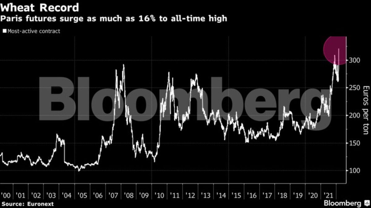 Σε νέα ύψη βρέθηκαν οι τιμές σιτηρών μετά την εισβολή της Ρωσίας στην Ουκρανία, προκαλώντας περαιτέρω αναταραχές στην παγκόσμια εφοδιαστική αλυσίδα.