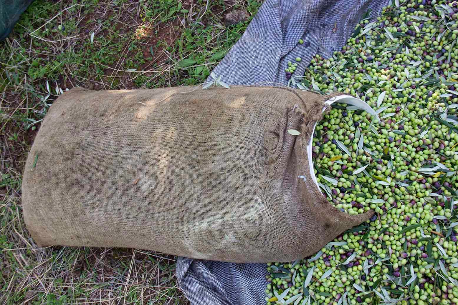 και σπρώχνουμε αρχικά τον καρπό με δύναμη να πάει προς τον πάτο του σακιού, για να γλυτώσουμε αργότερα τα πολλά ανέβα-κατέβα του σακιού.
