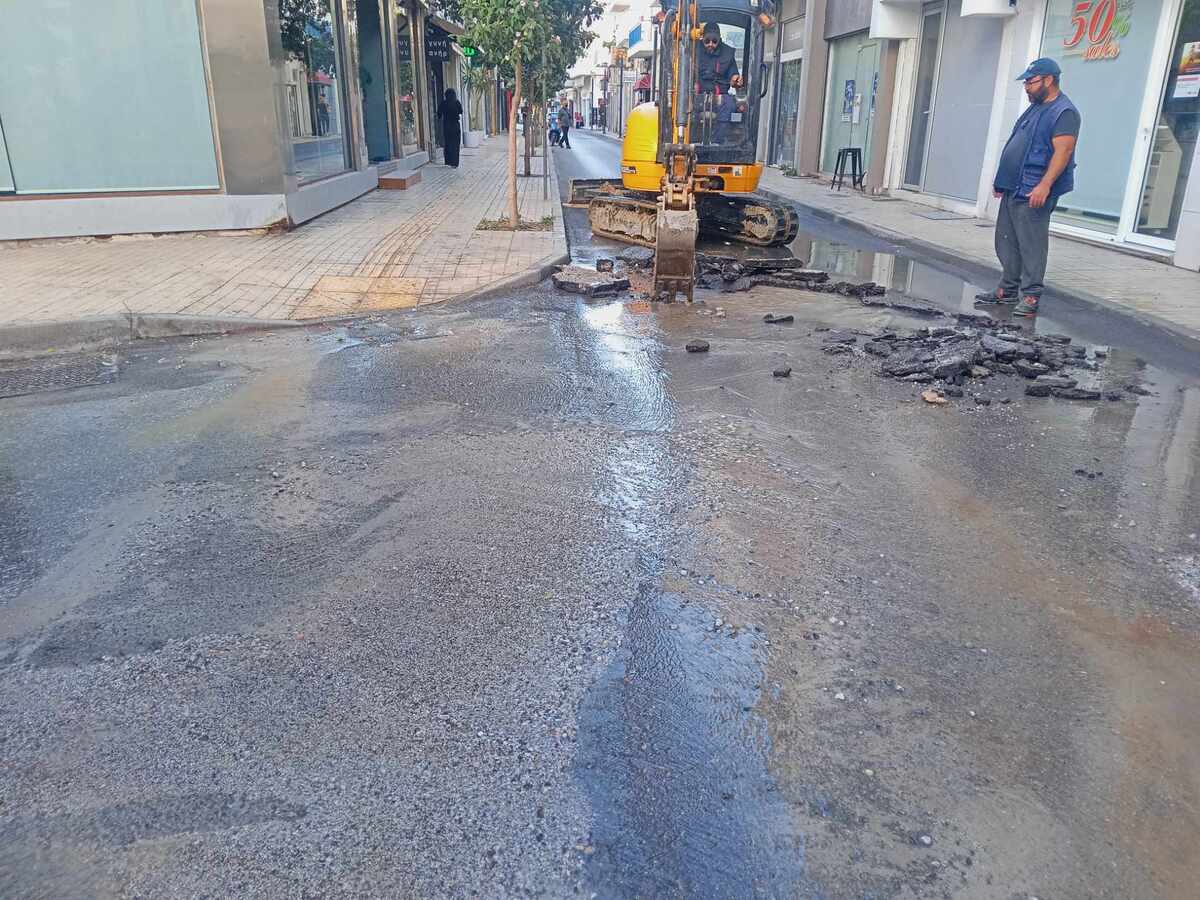 Πλημμύρισε το κέντρο της Ιεράπετρας από σπασμένο αγωγό