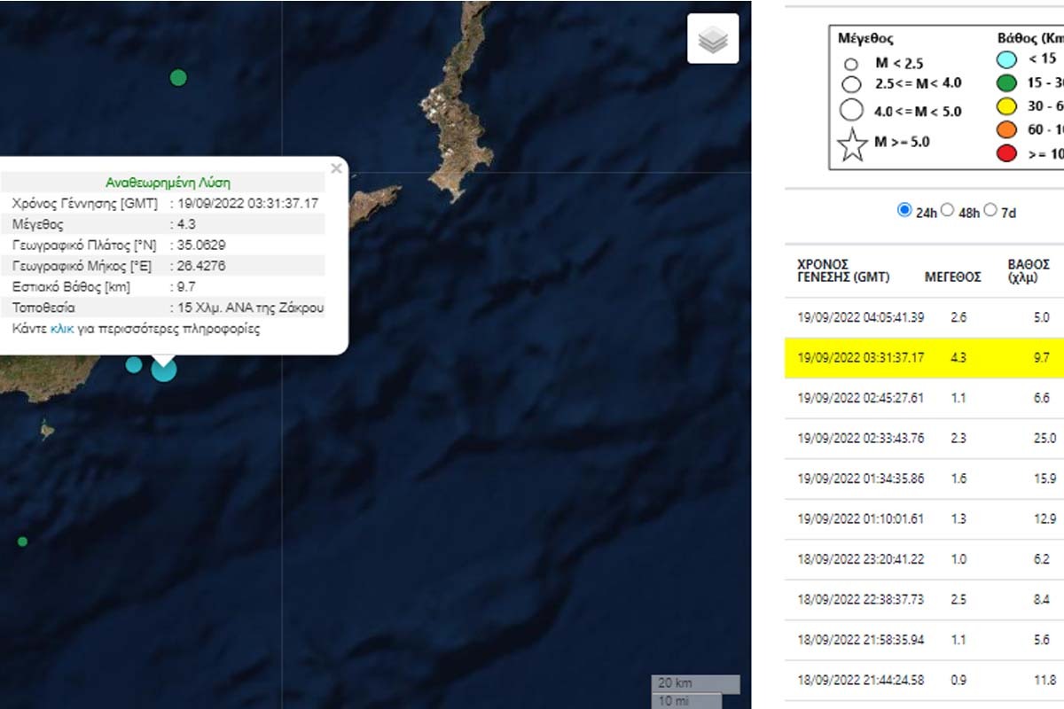 Νέος σεισμός καταγράφηκε τα ξημερώματα της Δευτέρας 19 Σεπτεμβρίου, στο θαλάσσιο χώρο ανατολικά της Κρήτης.