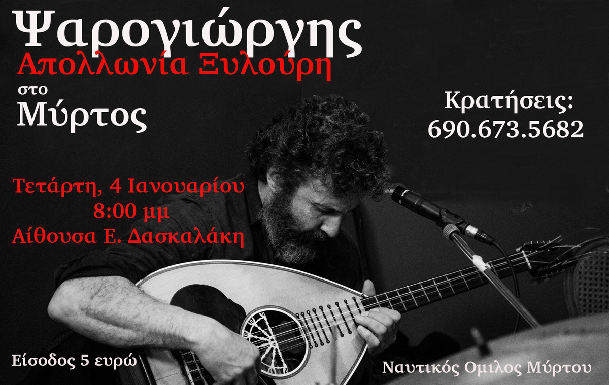 Στο Μύρτος ο Ψαρογιώργης την Τετάρτη 4 Ιανουαρίου! ΛΑΣΙΘΙ ΙΕΡΑΠΕΤΡΑ 2:41 μ.μ. - Δευτέρα 2 Ιανουαρίου 2023 02:01 μ.μ. - Δευ, 02/41/2023 ΜΥΡΤΟΣ, ΜΟΥΣΙΚΗ ΒΡΑΔΙΑ Μια μουσική βραδιά του Ναυτικού Ομίλου Μύρτου