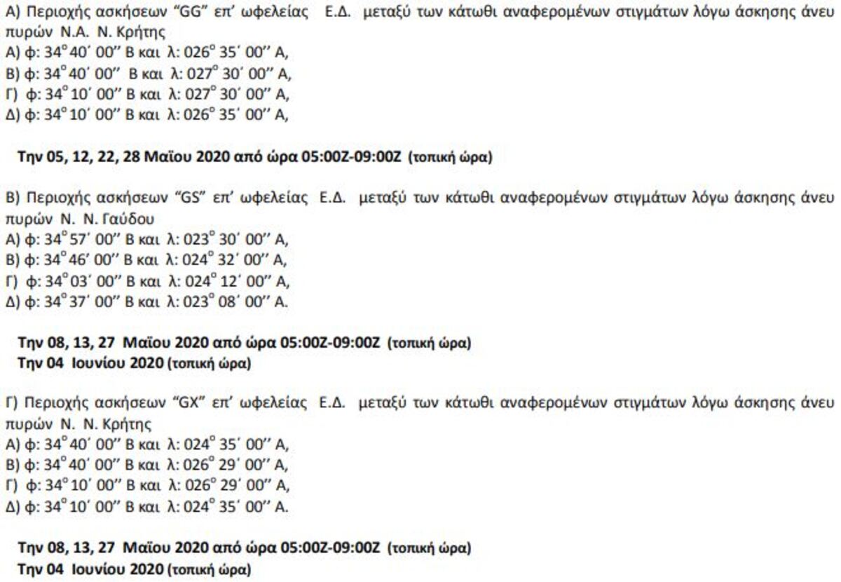 Σε άσκηση άνευ πυρών θα προχωρήσουν οι ελληνικές ένοπλες δυνάμεις σε περιοχές νότια της Κρήτης