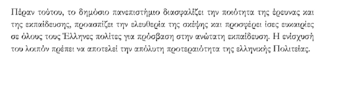 Επίσης τονίζεται πως τα δημόσια πανεπιστήμια χρήζουν άμεσης και γενναίας ενίσχυσης από την Πολιτεία.