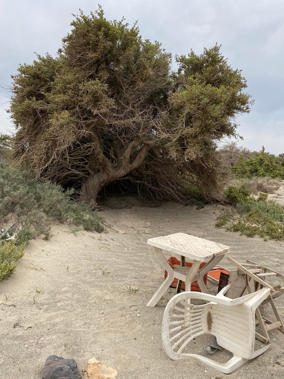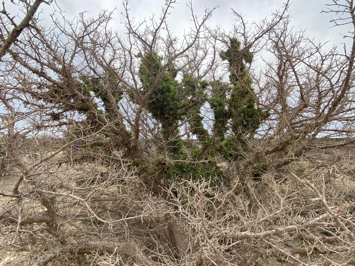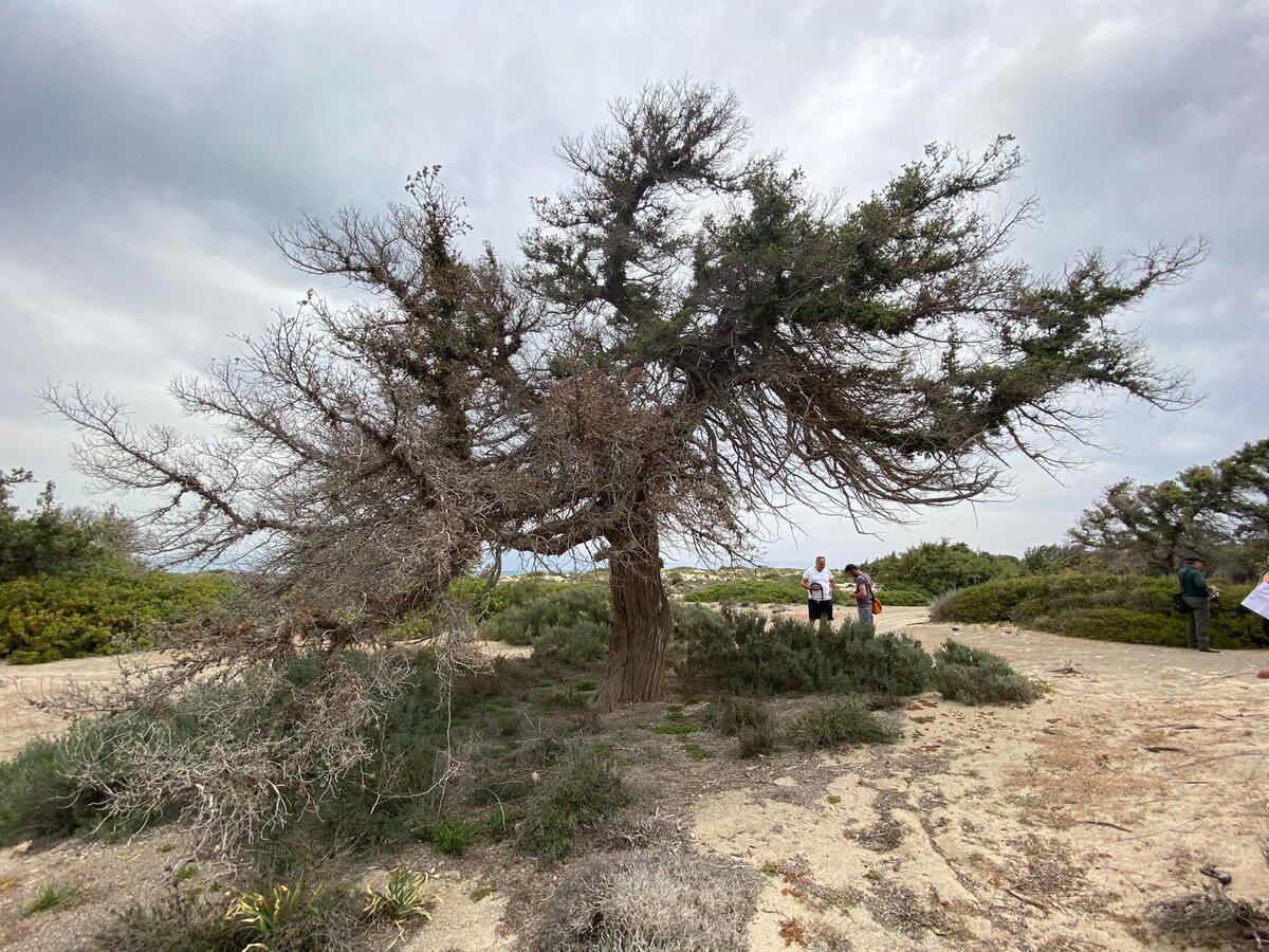 Η κατάσταση όμως του οικότοπου του άρκευθου/κέδρου είναι αρκετά ανησυχητική. Δεν υπάρχει καθόλου φυσική αναγέννηση. Μόνο στο βόρειο τμήμα το είδος παρουσιάζει μερική αναβλάστηση, με την ξήρανση όμως να επελαύνει κανονικά και το ποσοστό να υπερβαίνει το 50%. Στο νότιο, νοτιοδυτικό τμήμα, η νέκρωση των άρκευθων είναι ολοκληρωτική και ήδη χωροκατακτητικά είδη έχουν αναλάβει να τον εξαφανίσουν… Ο σχίνος ακόμα ανθίσταται!