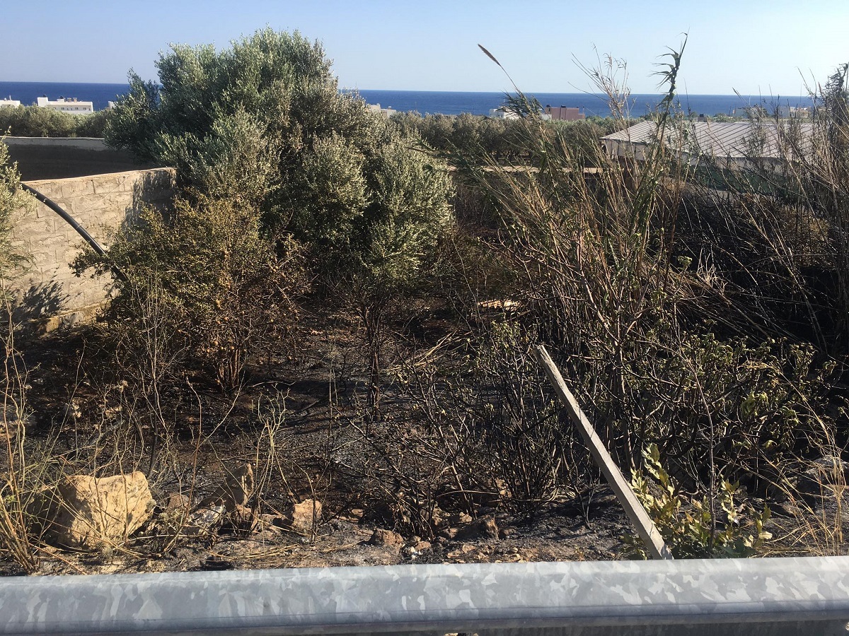 Σύμφωνα με πρώτες εκτιμήσεις κάηκαν 6 στρέμματα καλλιεργήσιμης γης ζημιές έχουμε και στις άκρες ενός θερμοκηπίου