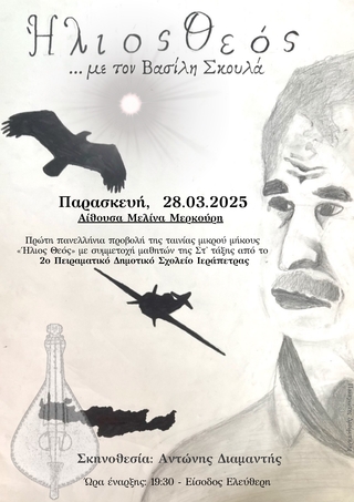 «Ήλιος Θεός» | Πρώτη πανελλήνια προβολή της ταινίας μικρού μήκους του 2ου Δημοτικού σχολείου Ιεράπετρας με τη συμμετοχή του Β. Σκουλά ΛΑΣΙΘΙ ΙΕΡΑΠΕΤΡΑ 8:48 π.μ. - Τετάρτη, 26 Μαρτίου 2025 08:03 π.μ. - Τετ, 26/48/2025 ΙΕΡΑΠΕΤΡΑ, 2Ο ΔΗΜΟΤΙΚΟ, ΣΚΟΥΛΑΣ, ΤΑΙΝΙΑ ΜΙΚΡΟΥ ΜΗΚΟΥΣ, ΗΛΙΟΣ ΘΕΟΣ Την Παρασκευή 28 Μαρτίου και ώρα 19:30 στην αίθουσα "Μελίνα Μερκούρη"