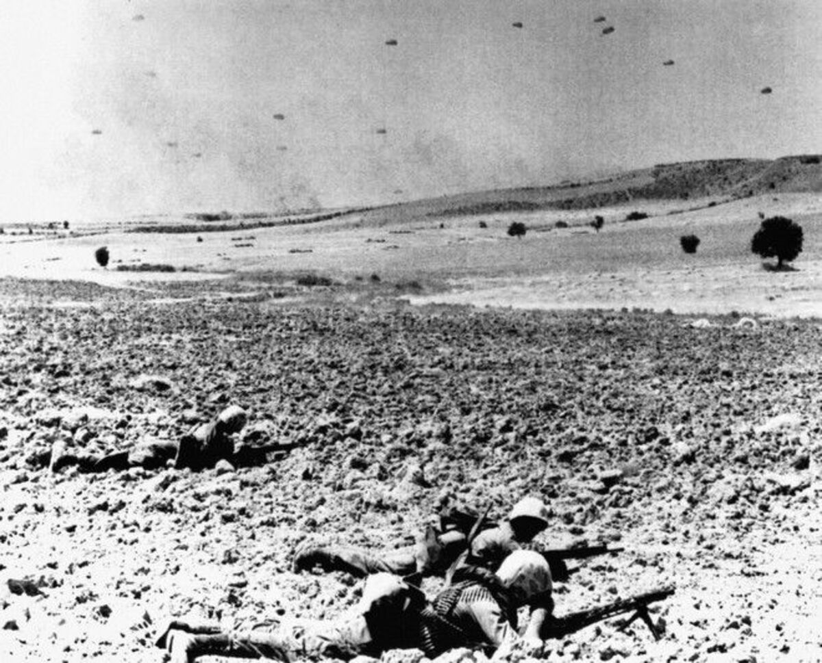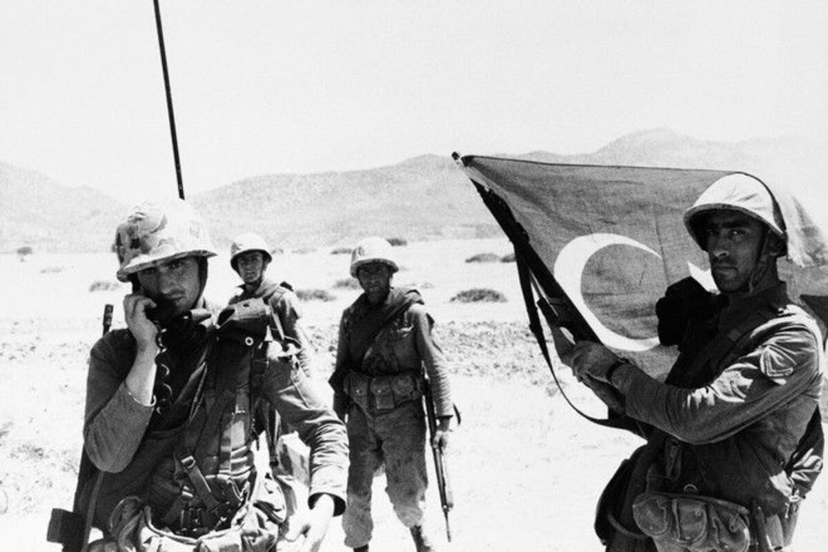 Τούρκοι αλεξιπτωτιστές τοποθετούν τη σημαία τους στα εδάφη της Κύπρου μετά την προσγείωσή τους ASSOCIATED PRESS