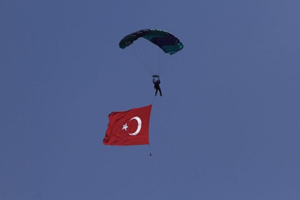 Τούρκος αλεξιπτωτιστής με τουρκική σημαία στο πλαίσιο των εορτασμών τους για την τουρκική εισβολή AP