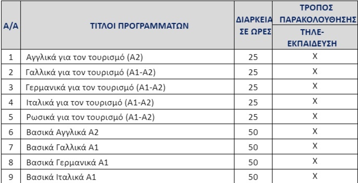 Τα υπόλοιπα τμήματα θα ξεκινήσουν μόλις συμπληρωθεί ο απαραίτητος αριθμός ενδιαφερομένων