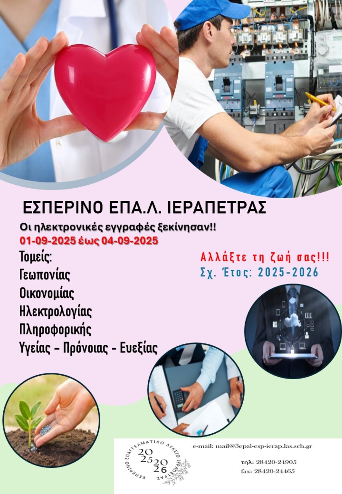 Το Εσπερινό ΕΠΑΛ Ιεράπετρας σας περιμένει να κάνετε το επόμενο βήμα στην εκπαίδευση και την επαγγελματική σας εξέλιξη!