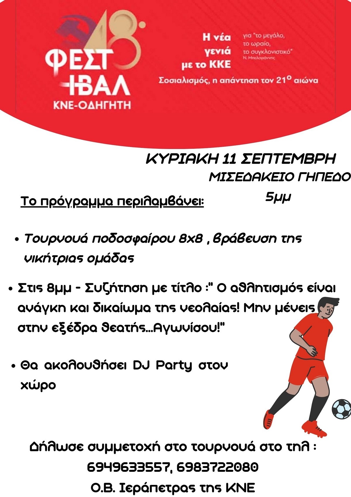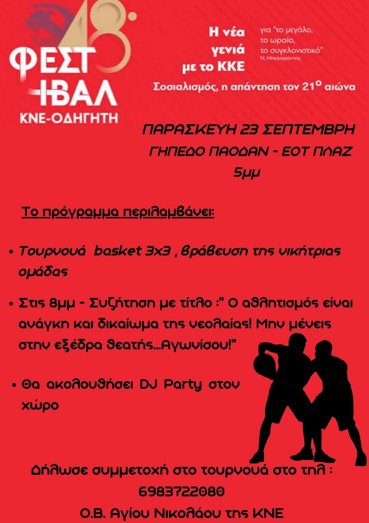 Στο Λασίθι της Κρήτης, κάνουν «στάση» στο μεγάλο «ταξίδι» τους σε όλη τη χώρα οι εκδηλώσεις του 48ο Φεστιβάλ ΚΝΕ - «Οδηγητή», με σύνθημα «Η νέα γενιά με το ΚΚΕ - Για το ωραίο, το μεγάλο, το συγκλονιστικό - Σοσιαλισμός η απάντηση στον 21ο αιώνα».