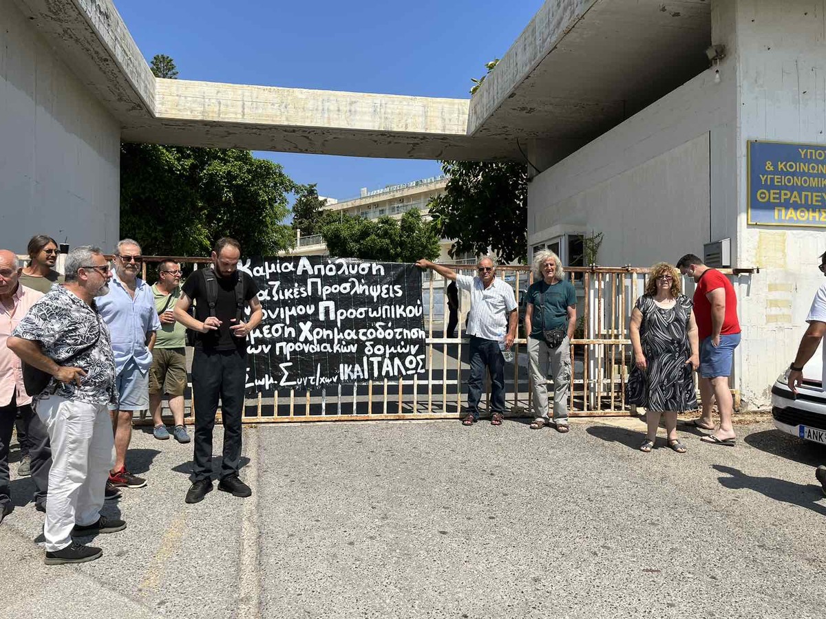 Άγιος Νικόλαος : Ένταση έξω από το Θεραπευτήριο Χρονίων Παθήσεων στη διαμαρτυρία για τις απολύσεις στις δομές του Κέντρου Κοινωνικής Πρόνοιας