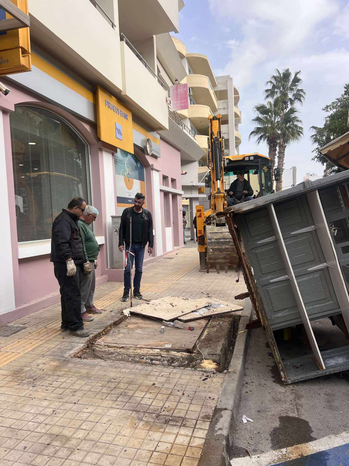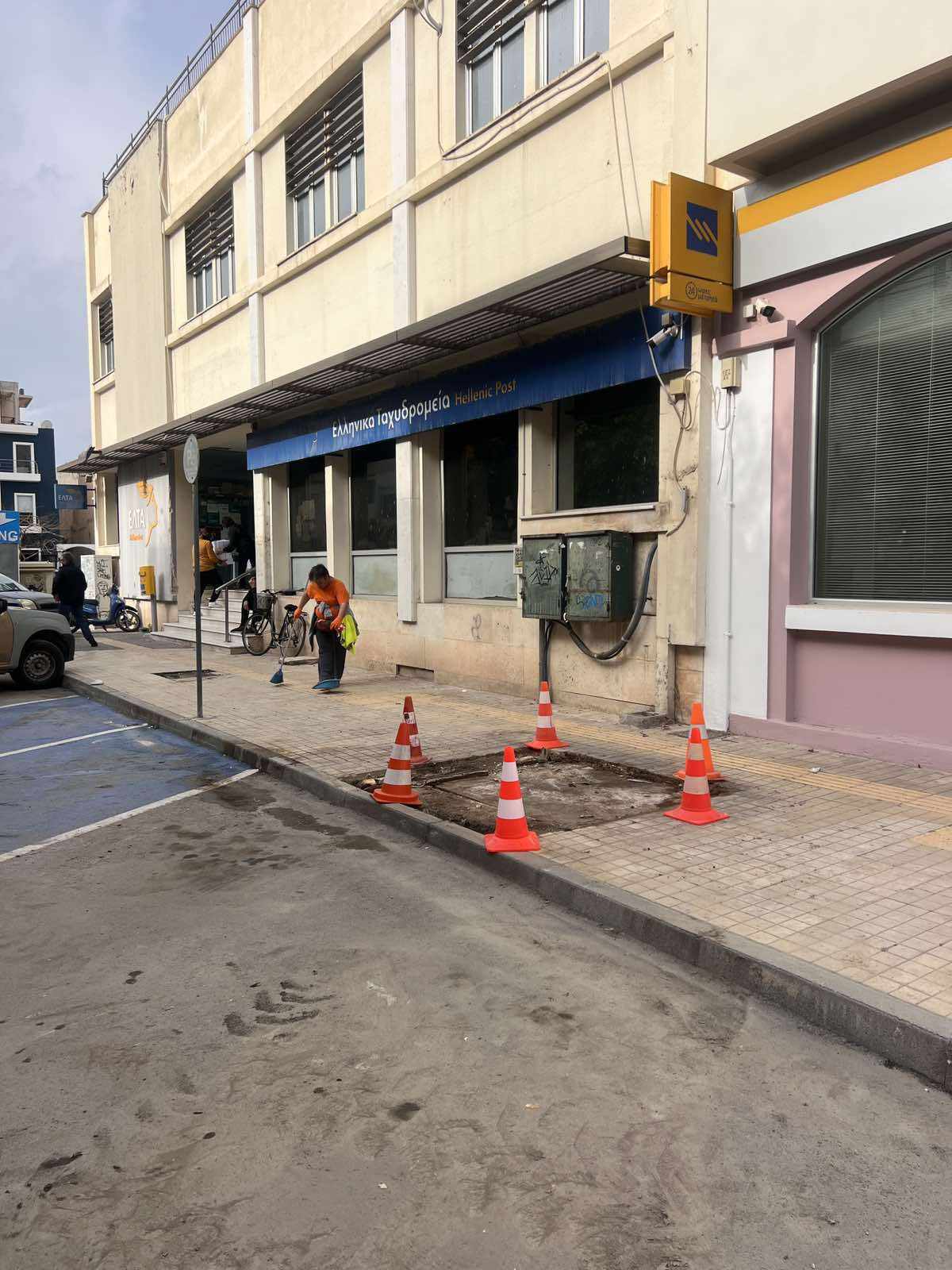 Εργασίες απομάκρυνσης του περιπτέρου έξω από το Ταχυδρομείο Ιεράπετρας το οποίο ήταν εκτός λειτουργίας, πραγματοποιήθηκαν σήμερα από συνεργείο της Τεχνικής Υπηρεσίας του Δήμου. Στο σημείο βρέθηκαν ο αρμόδιος αντιδήμαρχος κ. Μάνος Τζώρτζης καθώς επίσης η Δημοτική Αστυνομία για τη ρύθμιση της κυκλοφορίας. Εργαζόμενοι από την αρμόδια Υπηρεσία καθάρισαν το χώρο.