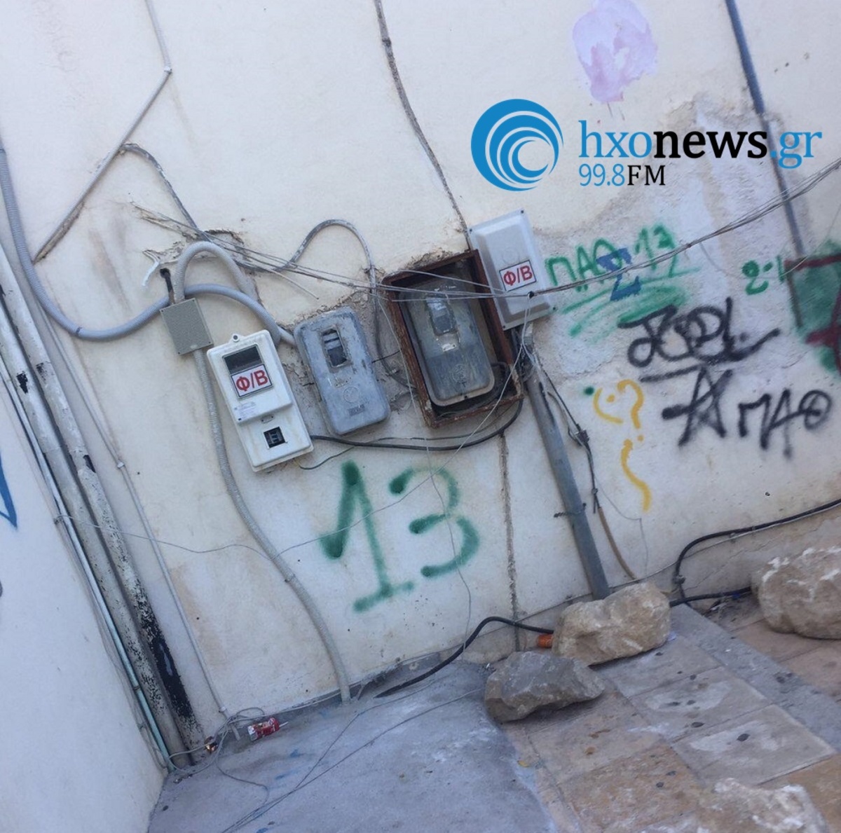 Σκουριασμένα κάγκελα και κολώνες, εκτεθειμένοι μετρητές ηλεκτρολογικού ρεύματος, φθαρμένες κολώνες, σοβάδες που πέφτουν, ρωγμές στους τοίχους, βρύσες σπασμένες και βρύσες κλειστές, συνθέτουν μεταξύ άλλων την εικόνα που παρουσιάζει το ΕΠΑΛ Ιεράπετρας.