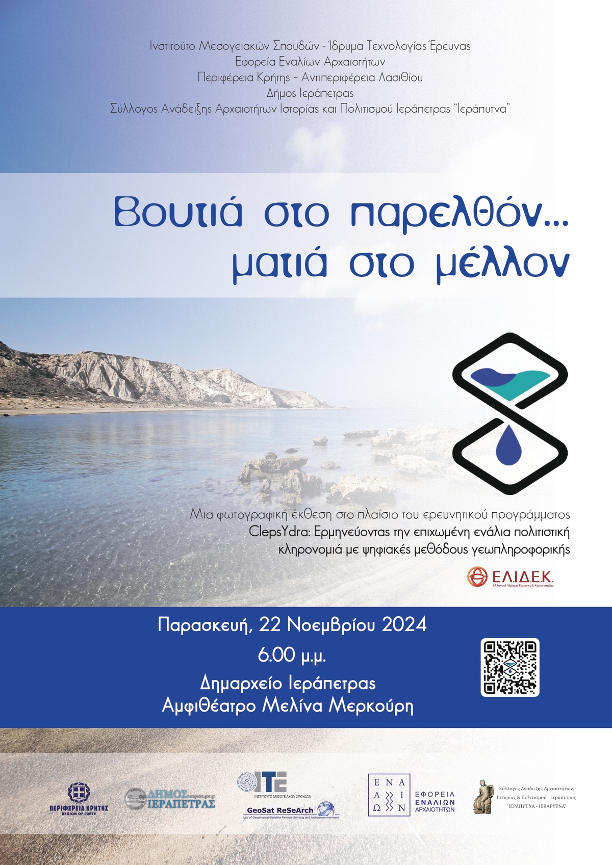 Μελίνα Μερκούρη στην Ιεράπετρα θα γίνει εκδήλωση που διοργανώνει ο Σύλλογος Αρχαιοτήτων- Ιεράπυτνα σε συνεργασία με τον Δήμο Ιεράπετρας, την Αντιπεριφέρεια Λασιθίου το Ινστιτούτο Μεσογειακών Ερευνών του ΙΤΕ Κρήτης και την Εφορεία Ενάλιων Αρχαιοτήτων με θέμα τα αποτελέσματα του διετούς προγράμματος