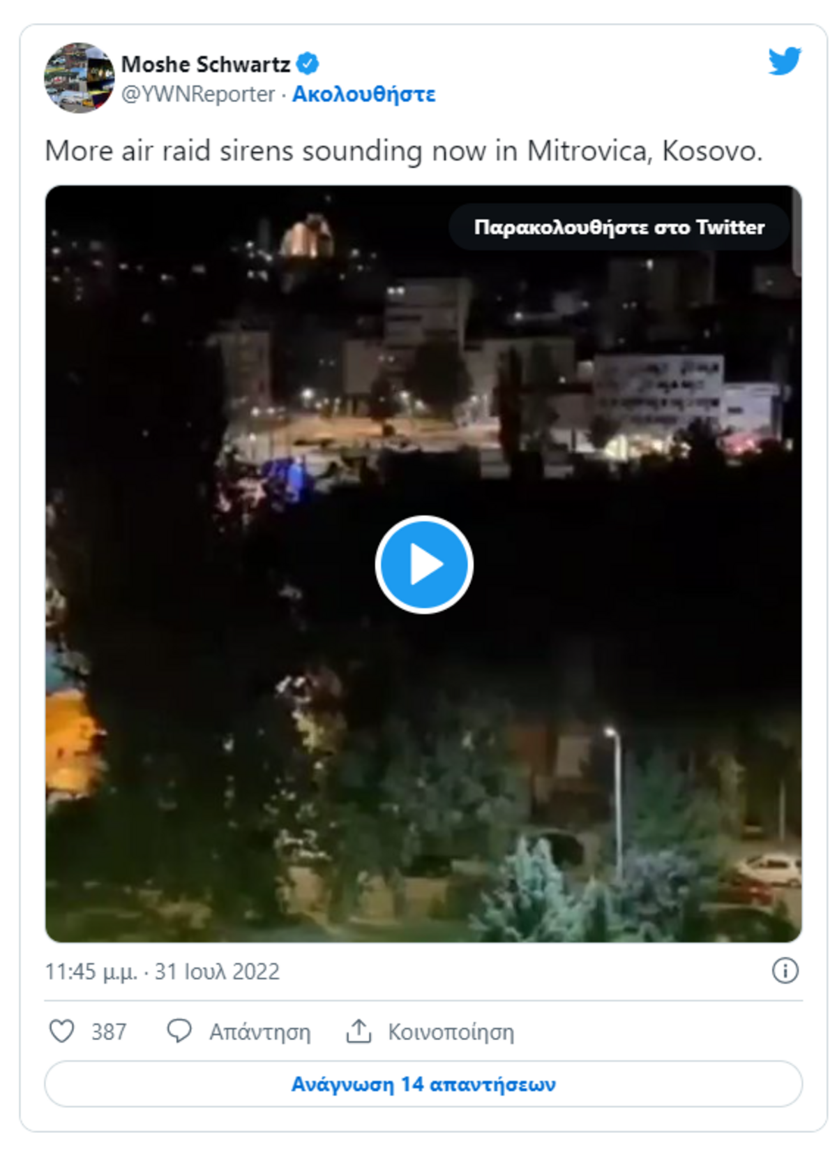Με παράταση ενός μήνα αποσοβήθηκε τις πρώτες πρωινές ώρες σήμερα η ξαφνική κρίση μεταξύ Σέρβων και Αλβανόφωνων πληθυσμών στο βόρειο Κόσοβο, που έφερε τους δύο πληθυσμούς στα όρια της ρήξης, με επίκεντρο την πόλη Μιτρόβιτσα, αποκτώντας, ταυτόχρονα, ισχυρή γεωπολιτική διάσταση, με φόντο τη ρωσική εισβολή στην Ουκρανία.