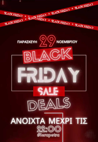 H Black Friday έρχεται αυτή την Παρασκευή στα καταστήματά της πόλης μας με διευρυμένο ωράριο λειτουργίας μέχρι τις 22:00! Προετοιμαστείτε για τις αγορές σας και αποκτήστε όλα τα αγαπημένα σας προϊόντα σε τιμές που δεν πρέπει να χάσετε! Ο Εμπορικός Σύλλογος Ιεράπετρας παραμένει στην ίδια πάγια θέση σε ότι αφορά τις Κυριακές! Δηλαδή κλειστά όλες τις Κυριακές του χρόνου εκτός από μια Κυριακή τα Χριστούγεννα και μία το Πάσχα. Επομένως τη Κυριακή 01/12/2024 εν όψει του Black Friday τα καταστήματα θα παραμείνουν ΚΛΕΙΣΤΑ. Ευχόμαστε καλές πωλήσεις σε όλους!