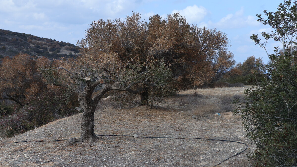 Φωτογραφίες υδατικά καταπονημένων ελαιοδένδρων και άγριας βλάστησης
