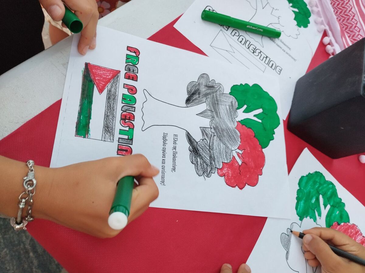 Διαβάσαμε ακόμη, από κοινού με το κόσμο, κείμενα παιδιών από τη Γάζα καθώς και ποιήματα Παλαιστίνιων και Ελλήνων ποιητών. Τα παιδιά ζωγράφισαν στο χαρτί και στα χέρια τους τη σημαία της Παλαιστίνης. Τη κεντρική ομιλία έκανε η πρόεδρος της τριμελούς επιτροπής της Ομάδας Γυναικών, Ατσαλάκη Μαριάνθη.