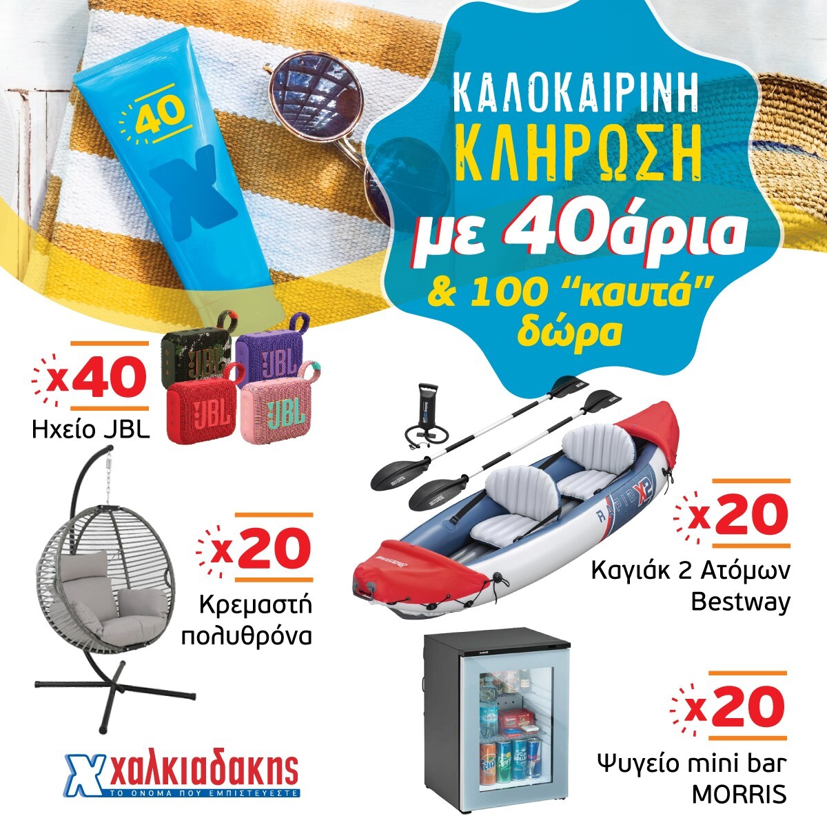 Γιατί όταν το θερμόμετρο «χτυπάει» 40άρια, στα Super Markets Χαλκιαδάκης βρίσκουμε πάντα τον τρόπο να το ρίχνουμε. Με στιλ και μεγάλα δώρα!