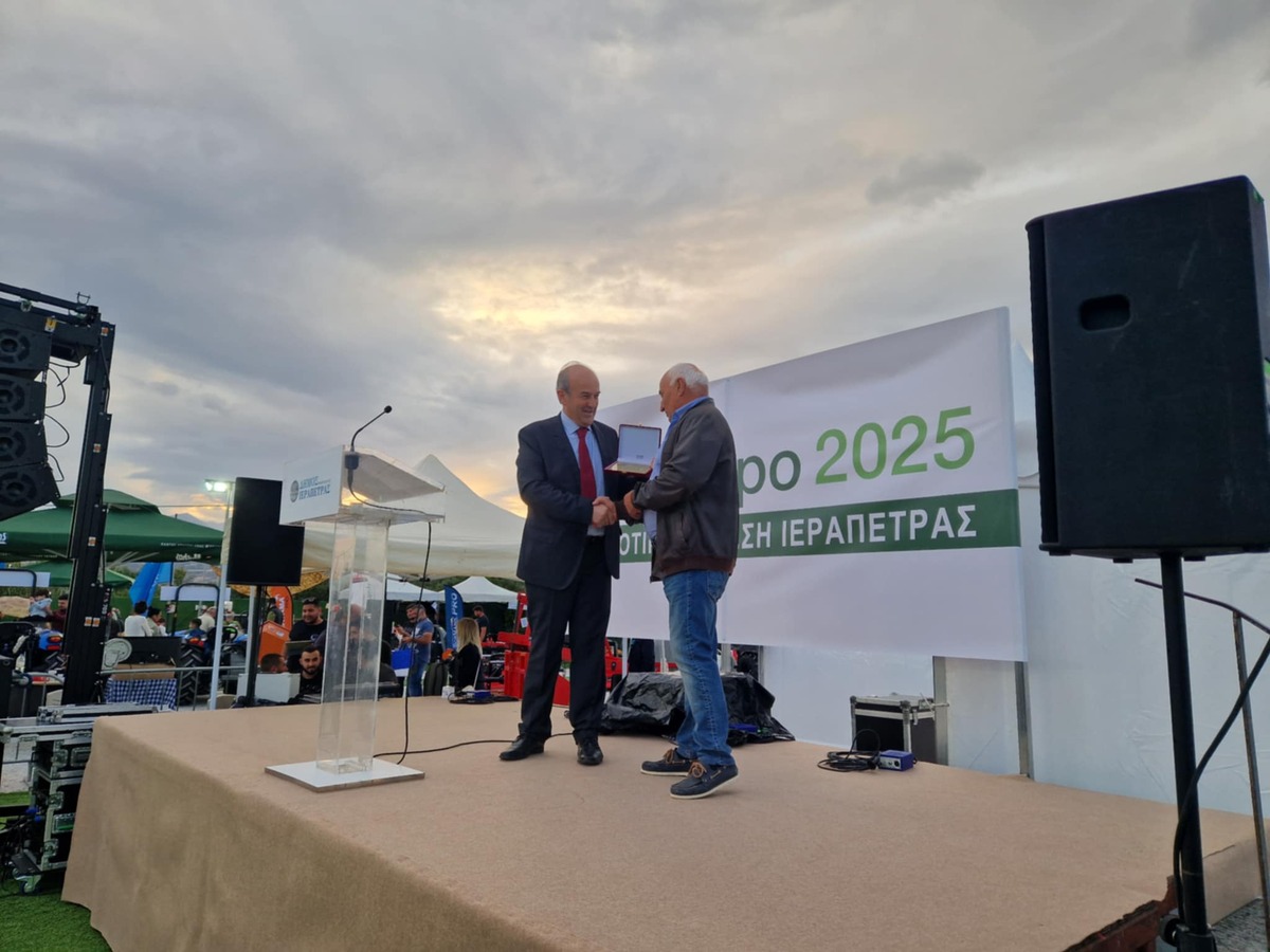 Ο Δήμαρχος απένειμε τιμητική πλακέτα στον κ. Εμμανουήλ Παπαδάκη για τη σημαντική συμβολή του στην καθιέρωση της Αγροτικής Έκθεσης στην Ιεράπετρα.