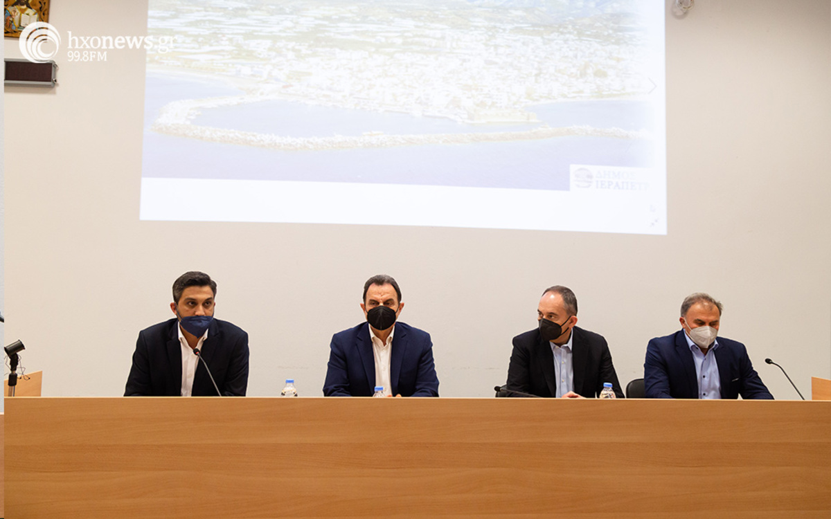 Εν συνεχεία ο κ. Υπουργός συμμετείχε σε σύσκεψη που έγινε στην αίθουσα συνεδριάσεων του δημοτικού συμβουλίου παρουσία του Δημάρχου Ιεράπετρας Θεοδόση Καλαντζάκη. Παραβρέθηκαν ακόμη οι Δήμαρχοι Αγίου Νικολάου Αντώνης Ζερβός, Σητείας Γιώργος Ζερβάκης, ο Οροπεδίου Λασιθίου Γιάννης Στεφανάκης, αντιδήμαρχοι ο αντιπεριφερειάρχης Λασιθίου Γιάννης Γουλιδάκης , το μέλος της επιτροπής ανάπτυξης πρωτογενούς τομέα της ΚΕΔΕ Αργύρης Πανταζής, εκπρόσωποι φορέων από το Λασίθι.