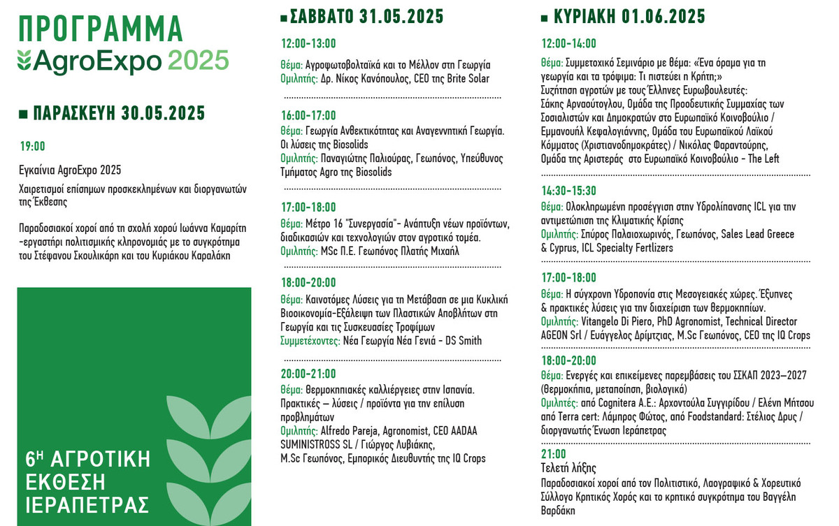 Περισσότερες πληροφορίες: www.agroexpoierapetra.gr