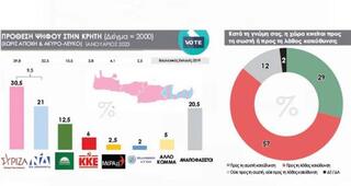Στο δρόμο προς τις κάλπες, ισχυρό προβάδισμα του κόμματος της αξιωματικής αντιπολίτευσης δείχνει δημοσκόπηση της Prorata για λογαριασμό της ΚΡΗΤΗ TV και του neakriti.gr.