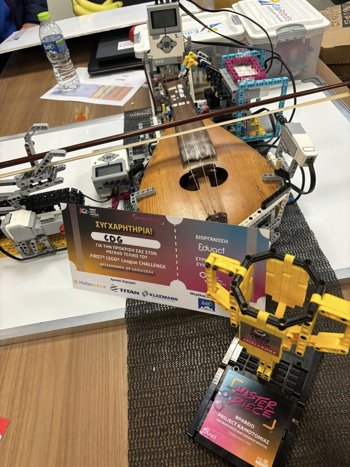 Τα κορίτσια με τη βοήθεια των προπονητών τους Χριστίνας και Αργυρώς Λαμπράκη και Μαρίας Χαλέπη προγραμμάτισαν μια ρομποτική λύρα ώστε να παίζει τις νότες από τα «Μαλαματένια Λόγια».
