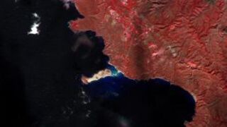 Η επόμενη δορυφορική φωτογραφία αφορά και πάλι τον νομό Χανίων και έχει εστιαστεί πάνω απο το Ελαφονήσι όπου διακρίνεται το φυτοπλαγκτόν της θάλασσας με ανοιχτό θαλασσί χρώμα.