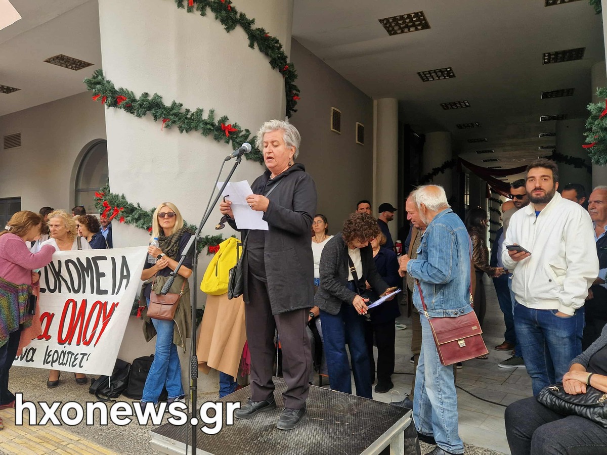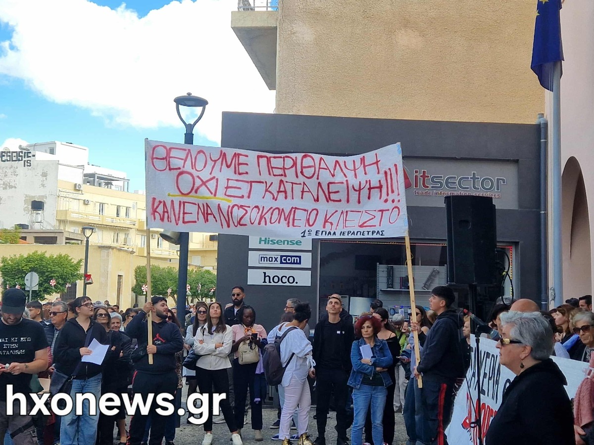 Η συγκέντρωση, που πραγματοποιήθηκε στη 13.00 το μεσημέρι έξω από το Δημαρχείο μετά από κάλεσμα της Επιτροπής Αγώνα και του Συλλόγου Εργαζομένων του Νοσοκομείου Ιεράπετρας, συγκέντρωσε πλήθος πολιτών.
