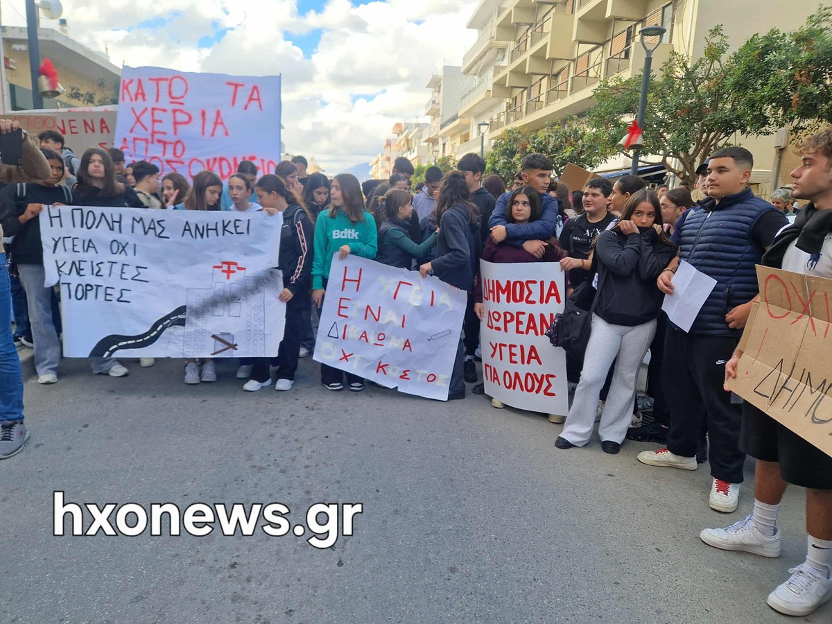 Ιδιαίτερα μαζική ήταν η συμμετοχή της μαθητικής κοινότητας: όλα τα σχολεία της Ιεράπετρας έδωσαν το παρών, με τους μαθητές να δηλώνουν δυναμικά την ανάγκη πρόσβασης σε επαρκείς και ασφαλείς υπηρεσίες υγείας.