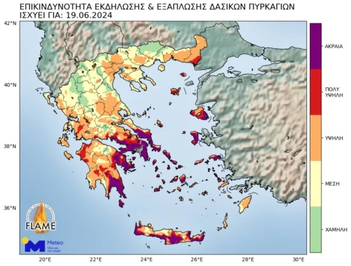 Χάρτες επικινδυνότητας αναρτώνται καθημερινά στο meteo.gr.