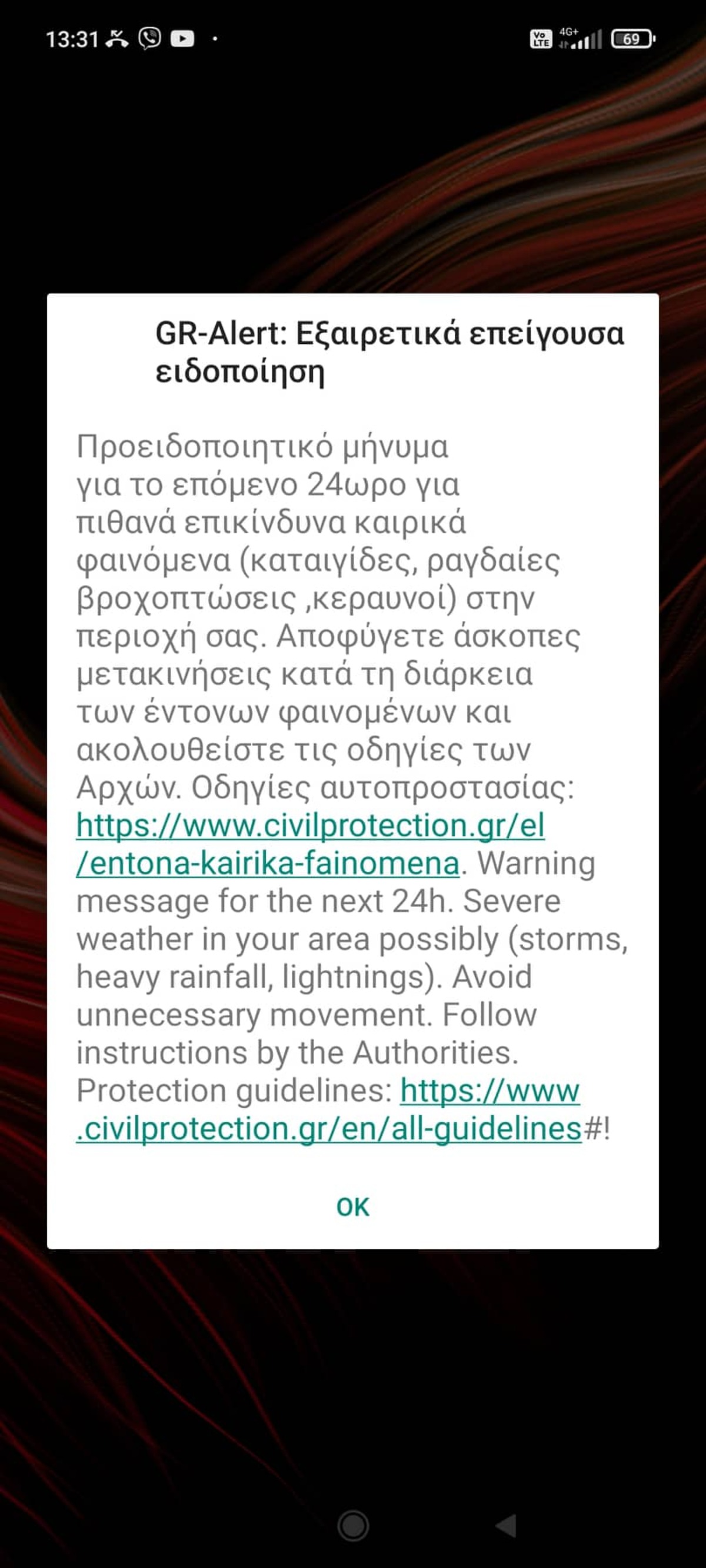 Έκτακτη ειδοποίηση για έντονα καιρικά φαινόμενα