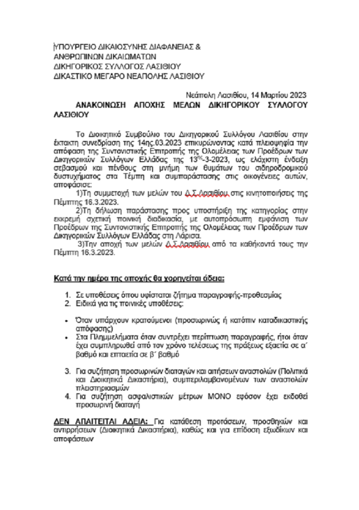 ΔΙΚΗΓΟΡΙΚΟΣ ΣΥΛΛΟΓΟΣ ΛΑΣΙΘΙΟΥ