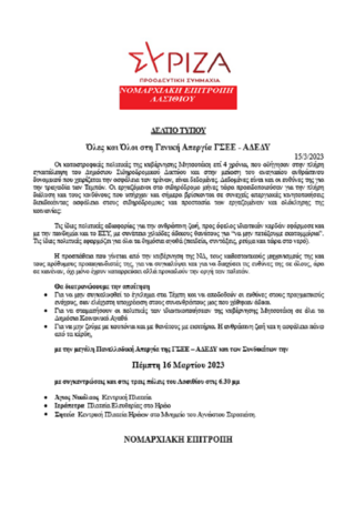 ΣΥΡΙΖΑ ΛΑΣΙΘΙΟΥ: Όλες και Όλοι στη Γενική Απεργία ΓΣΕΕ - ΑΔΕΔΥ