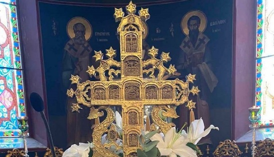 Κατά τη διάρκεια της ακολουθίας θα τεθεί σε προσκύνηση Τίμιος Σταυρός από την Ιερά Μονή Τοπλού, που περιέχει τεμάχιο από το Τίμιο Ξύλο του Σταυρού του Κυρίου μας.
