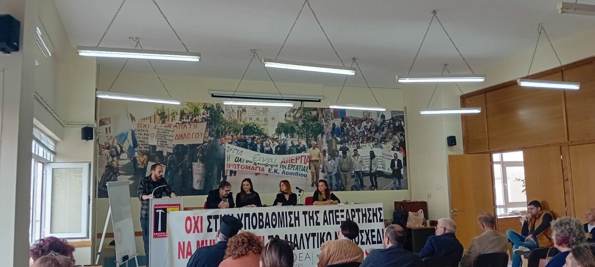 Με επιτυχία ολοκληρώθηκαν οι συσκέψεις μαζικών φορέων σε Άγιο Νικόλαο και Ιεράπετρα, που κάλεσαν ο Σύλλογος Οικογένειας ΚΕΘΕΑ Αριάδνη και το παράρτημα του Συλλόγου Εργαζομένων ΚΕΘΕΑ.