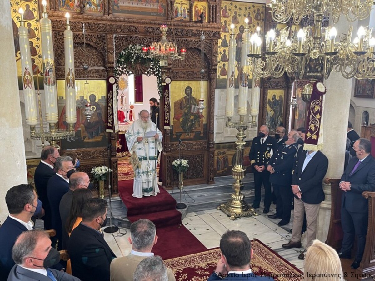 Μέσα στην πανηγυρική και ευφρόσυνη ατμόσφαιρα της λαμπροφόρου Αναστάσεως του Κυρίου και με μεγαλοπρέπεια εορτάσθηκε τη Δευτέρα της Διακαινησίμου Εδδομάδος, 25 Απριλίου 2022, η μνήμη του Αγίου ενδόξου Μεγαλομάρτυρος Γεωργίου του Τροπαιοφόρου στον πανηγυρίζοντα φερώνυμο Ιερό Μητροπολιτικό Ναό της πόλης της Ιεράπετρας.