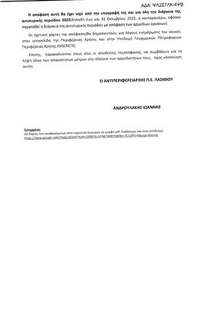 Λασίθι: ''Κλείνουν'' οι περιοχές Natura τις ημέρες υψηλής επικινδυνότητας για πυρκαγιά ΛΑΣΙΘΙ ΙΕΡΑΠΕΤΡΑ 1:03 μ.μ. - Τετάρτη, 29 Ιουνίου 2022 01:06 μ.μ. - Τετ, 29/03/2022 ΛΑΣΙΘΙ, NATURA Η απόφαση του αντιπεριφερειάρχη Γιάννη Ανδρουλάκη