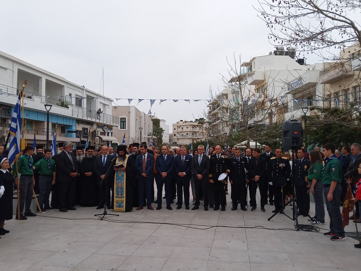 Με κάθε επισημότητα η Ιεράπετρα τίμησε την Εθνική Επέτειο της «25ης Μαρτίου 1821». Ανήμερα της Επετείου τελέστηκε Δοξολογία στον Ιερό Μητροπολιτικό Ναό Αγίου Γεωργίου, προεξάρχοντος του Πανοσιολογιωτάτου Αρχιμανδρίτου Αμβροσίου Σκαρβέλη, Πρωτοσυγκέλλου της Ιεράς Μητροπόλεως Ιεραπύτνης και Σητείας, παρουσία των Αρχών του τόπου, της Δημοτικής Φιλαρμονικής, εκπροσώπων Σχολείων, Προσκόπων, Οδηγών και Σωματείων με τις σημαίες τους.