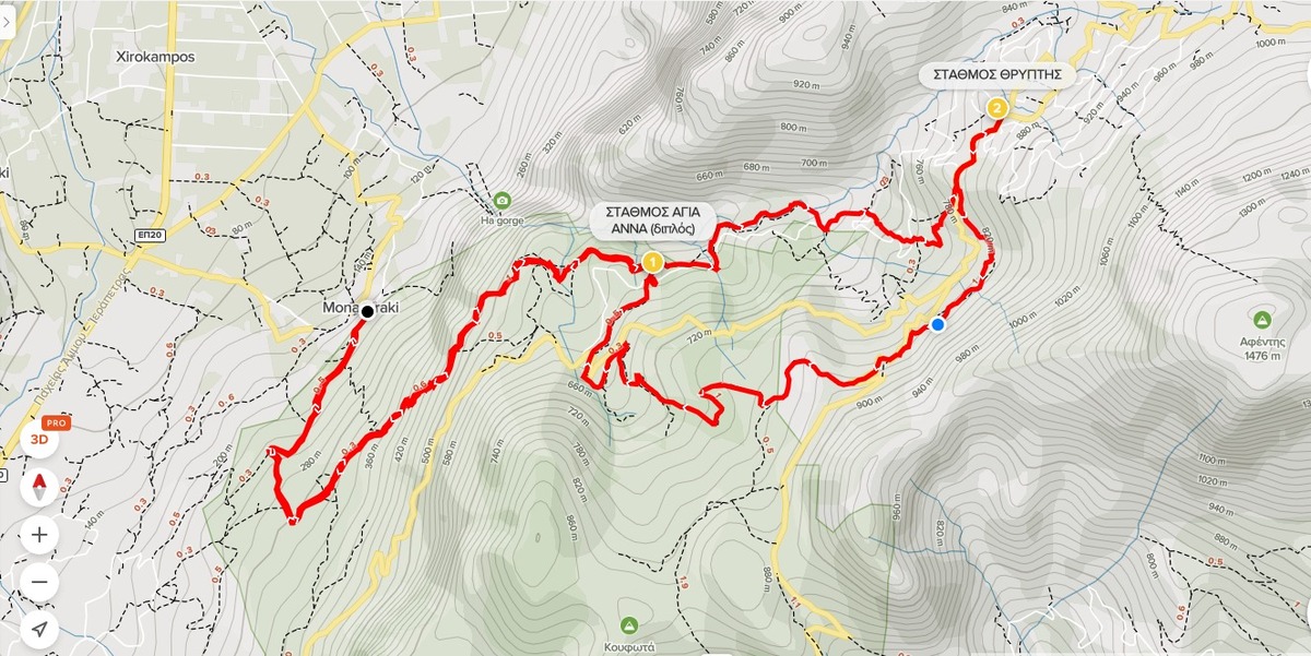 Ώρα εκκίνησης : 10:30 π.μ Συνολικό μήκος : 17,2 χλμ Θετική/Αρνητική υψομετρική διαφορά : ±870 μ.