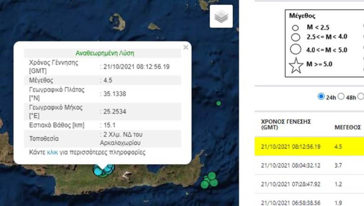 Αμείωτη συνεχίζεται η σεισμική δραστηριότητα στην περιοχή του Αρκαλοχωρίου